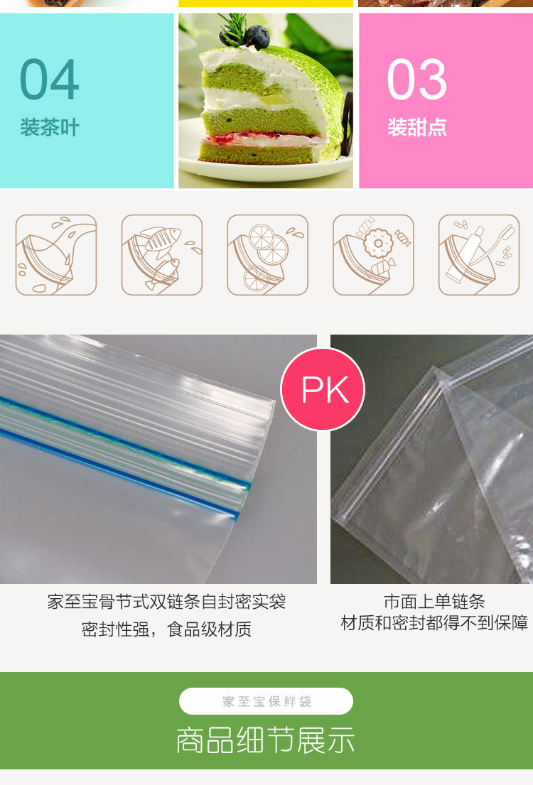 冰箱用品 > 冰箱收納 【家至寶】雙鏈條骨節(jié)式自封袋